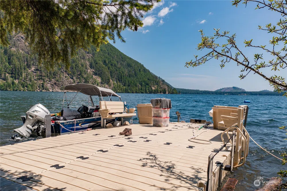 Welcome to your own off-road/off-grid waterfront glamping paradise!! 16+ acres of forested land on the Westside of Lake Cushman bordered by over 1100 feet of low bank shoreline and National Forest! Accessed by boat or hike about 1 mi along well-established Dry Creek Trail. Lovingly improved with meticulous preparation - 2 beautiful structures built from wood milled onsite, featuring open and light dry usable space with tons of screened windows. Approved Shoreline Permits for barge which serves as a floating dock + anchors/mooring buoy, shore access trail & campfire. Rainwater catchment w/ 2 - 300 gal holding tanks, permitted 2-bed rated septic system, toilets, 2 propane hot water heaters for utility sinks and bath/shower. One of a kind!