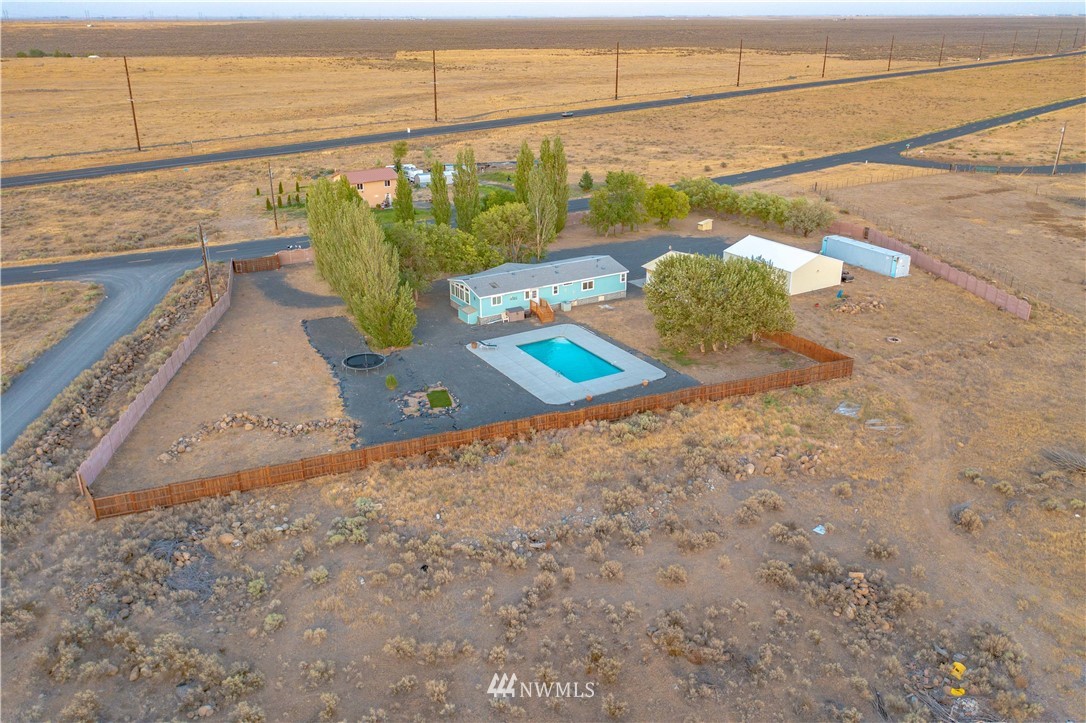 Bring Your Floaties! This fabulous property is conveniently located on nearly 9 acres btwn Moses Lake & Ephrata. Recently remodeled with fresh interior paint throughout, new countertops & kitchen appliances + new vanities & flooring in the master bath! You will enjoy entertaining inside w/2 living spaces & open kitchen, as well as outside by the 20'x40' pool! Large concrete apron surround provides plenty of space for lounging & the 3' to 9.5' depth is ideal for perfecting your cannonball! No shortage of storage-2 SHOPS-28'x28 and 30'x40' + Connex container. The house, shops & pool are fully enclosed by concrete & wood fencing, w/gated entry for added privacy. The gravel drive & mature landscaping make you personal oasis low maintenance!