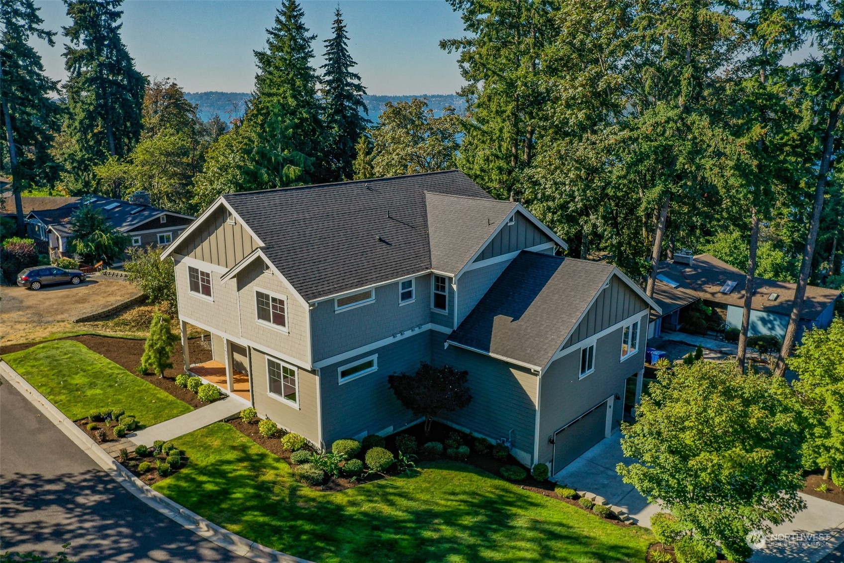 Light-filled Northwest contemporary home with beautiful lake views & upscale finishes throughout! 9' ceilings on main, hardwood floors, upgraded plush carpet & luxe baths. Spacious living room w/gas FP & walls of windows to enjoy the wonderful views. Gourmet kitchen w/SS appliances, 5-burner gas range, wine fridge, island w/eating bar. Adjoining eating area with access to the expansive deck - a great place to watch the boats go by & enjoy amazing sunsets. 5 bedrooms, 3.75 baths w/ primary on main w/5-piece bath, washer/dryer hook-up plus option for primary up w/private bath. Large bonus room up, dual-zone AC, custom blinds w/remotes, 2+ car garage + 288 sf unfinished storage. Easy access to 405/I90 -10 minutes to Bellevue/Mercer Island.