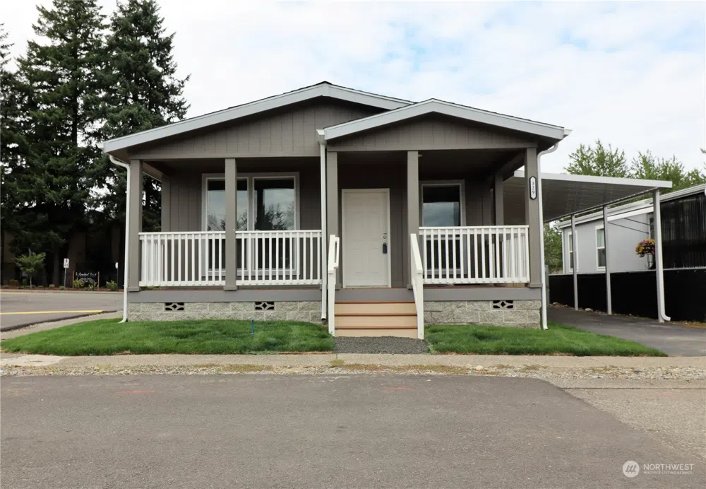 SPACIOUS NEW doublewide for sale at Friendly Ridge! Be the first to live in this 2022 Karsten: 3 bed / 2 bath / 1,200 sq.ft. The home is ready with a brand new carport, a new exterior storage shed, and gorgeous block skirting, and a large front deck. Inside you will find large windows, a kitchen island with optional seating, new stainless appliances, and a separate area for laundry. Coming soon to Friendly Ridge is a newly renovated community clubhouse with incredible amenities. Friendly Ridge is a wonderful community and is conveniently located near everything Olympia has to offer. Come make it yours!
