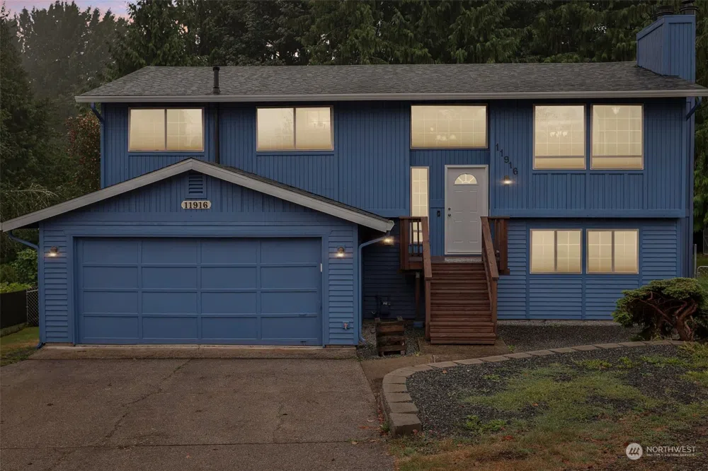This Lake Stevens home combines comfort & functionality featuring a bright kitchen opening to a large newly built deck overlooking a fenced backyard filled w/fruit bushes, trees & garden spaces. Spacious living room seamlessly flows into the dining & kitchen areas creating an inviting space perfect for gatherings. Lower level offers potential for an accessory dwelling unit complete w/ 4th bedroom, 3/4 bath, an expansive family room w/ a kitchenette & separate entrance. Recent updates include new roof & fresh interior & exterior paint. Additional amenities include RV parking, 2 car garage & a large driveway to accommodate various parking needs. The home is conveniently located in a cul-de-sac close to schools, downtown, & the lake. No HOA.