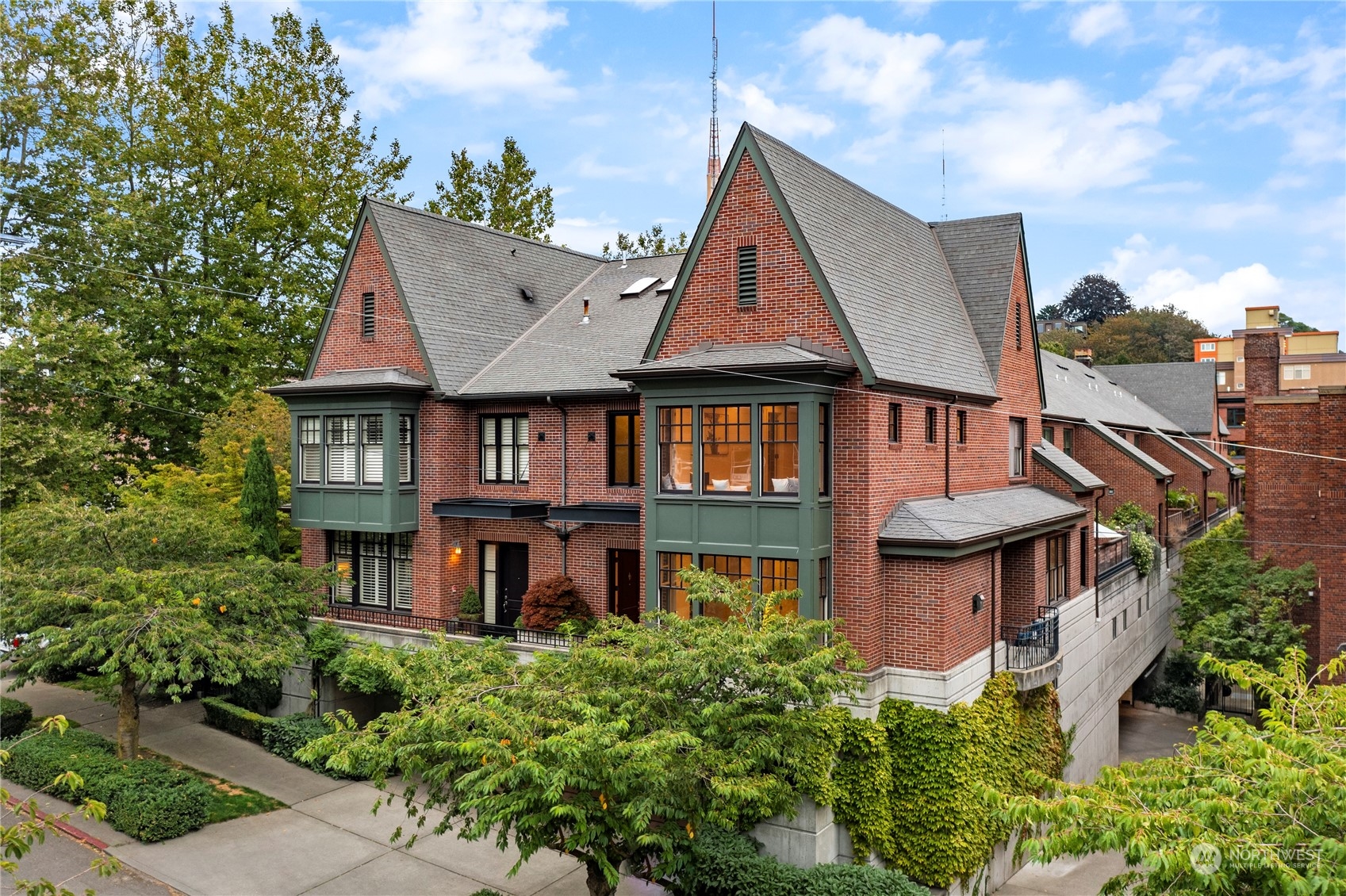 Quiet luxury on Queen Anne's South Slope. Gracious, elegantly detailed residence in award-winning development by distinguished Seattle architect Jim Bodoia. Host formal dinners or casual cocktail parties in Old World-scaled entertaining spaces with 10-foot ceilings. Regulate climate with custom-added A/C. 2 giant primary suites (each with sumptuous bathroom and walk-in closet) grant comfort and privacy to you and your guests. Curl up with a book on generous window seating. Easily accessed underground parking for 2 vehicles. On tranquil tree-lined street 5-minute walk from bustle of Q. Anne Ave and steps from iconic Kerry Park showcasing spine-tingling views of the Seattle skyline, Space Needle, Mt Rainier.