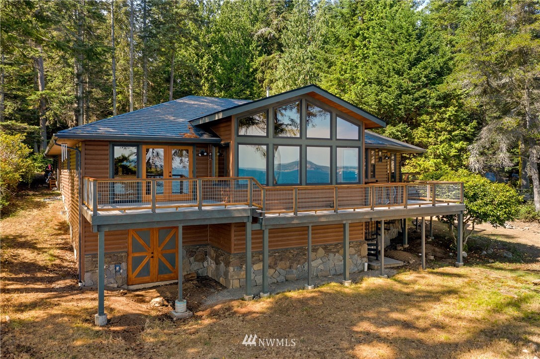 This is island living at its best ! Exquisitely positioned and executed, this custom waterfront home is a delight from the moment you enter. Extensive use of hardwoods and granite greet you, with fantastic and expansive views of boating activity, whales, sunrises, mountains from almost every room in this single floor home. Luxurious finishes with custom tile and stone work. Gourmets kitchen, with stainless appliances, bar sink, tons of storage, pantry. Master suite has walk-in closet, doors onto extensive decks, and bathroom with sauna. Lower level has ¾ bath and large area , ready to add rec room with outside entrance. Detached garage has studio/bedroom with ½ bath and pellet stove. Lifetime roof. Ramp access.