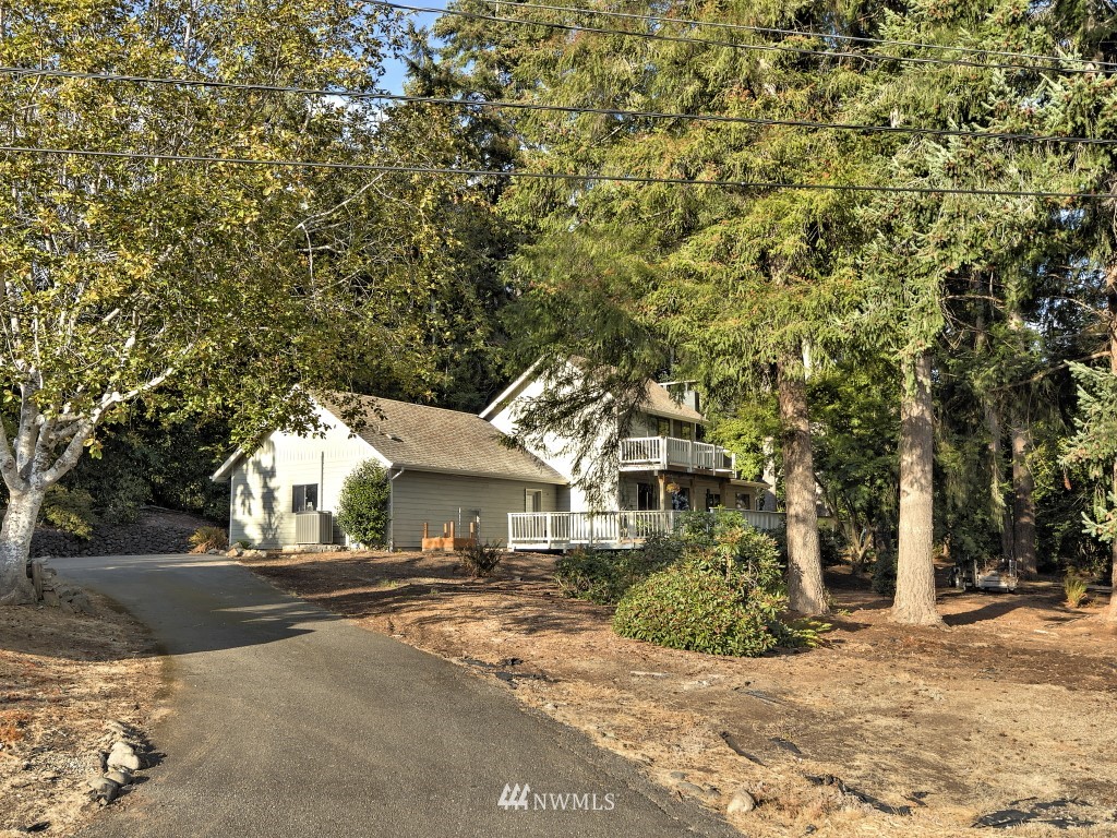 Enjoy a partial bay view from the deck of the private master and bath upstairs. On the main floor of this beautiful home are the second bedroom and den/office. Vaulted ceilings in the living room features a wood fireplace and is open to large deck with another partial view of the Bay. Extra storage space and closets throughout. Fun Harry Potter closet! More than an acre of level land.
