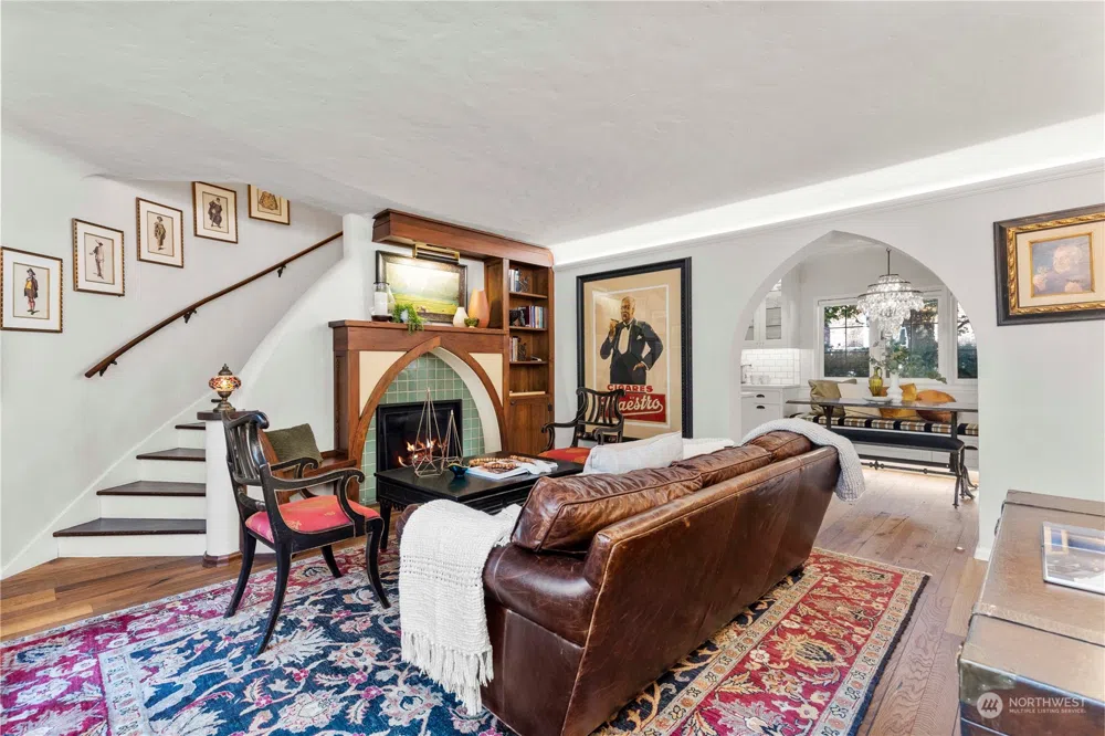 Experience the epitome of luxury living in this meticulously renovated Anhalt Condo at Twin Gables. New electrical, new plumbing, and top-of-the-line designer updates throughout. Stunning Gothic Tudor gas fireplace with bent-wood surround, French-inspired carpentry, and pointed arches exude elegance. Chef's kitchen with dining seatings boasts Wolf stove Liebherr fridge, custom cabinets, and porcelain farmer’s sink. New primary suite features spa-inspired bath, walk-in closet, washer/dryer, and French doors leading onto a balcony overlooking tranquil courtyard. Enjoy Lutron automation, designer fixtures, and LED accents. Nestled on tranquil North Capitol Hill, short stroll to the best shops, eateries, Light Rail Station. Truly one-of-a-kind!