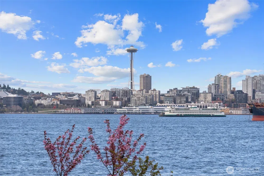 Be still my heart! Dynamic and direct City view from front-facing two-level condo. The floorplan captures the mesmerizing cityscape from the lower-level living space areas as well as both upstairs bedrooms. Have a dinner party with the best City view as a backdrop, & retire at night to the twinkling and magical jewels that are Seattle’s dusk-through-dawn delight. This unit is an updated 1570 sq. ft. condo & includes a spacious upstairs office/den area. The location is beyond perfect – a very short jaunt to Salty’s on Alki & the Elliott Bay Water Taxi. Harbor Park Condominium is well-established with homeowners who are attentive to the running of the Association. I guarantee that this one will make your heart smile! Aloha from Alki!