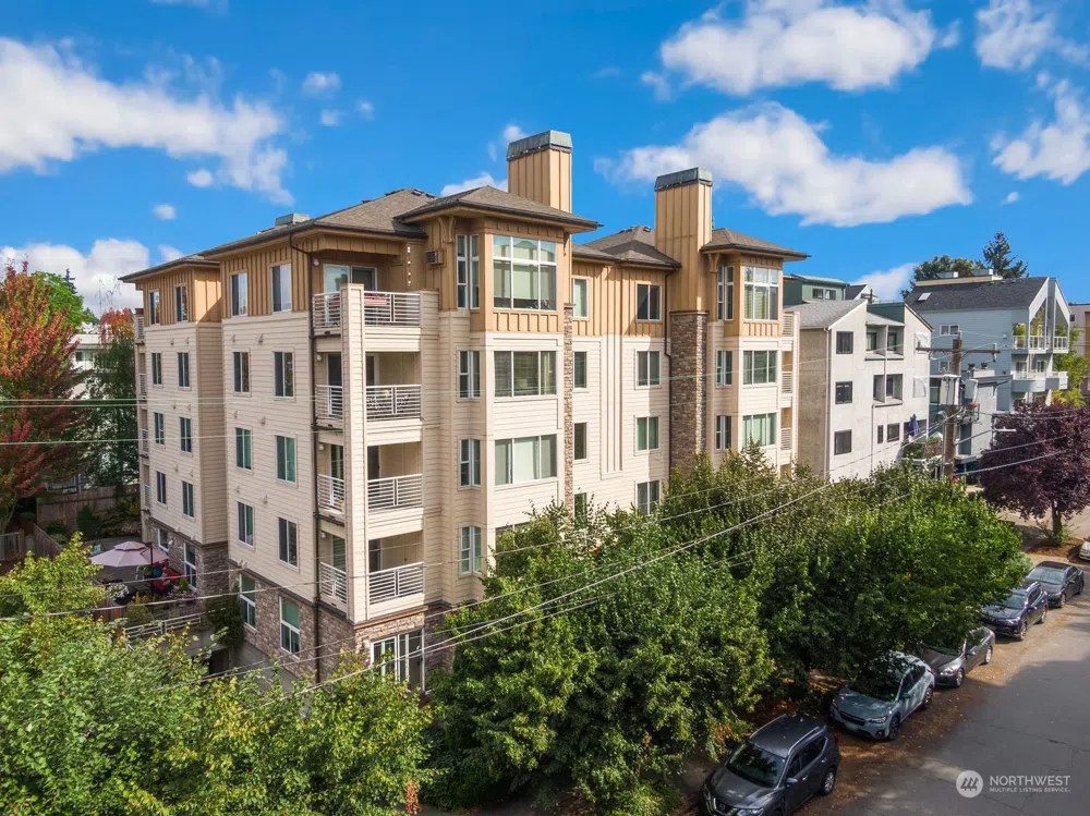 Flooded with light, this updated southwest corner unit is truly a gem. Located in the heart of Ballard with great restaurants, a year-round Farmer’s Market, grocery stores & several boutiques within blocks. This large condo offers an open floor plan with great entertaining spaces. The primary bedroom is a true ensuite with a huge walk-in closet & grand 5pc bath. The spacious 2nd bedroom is well appointed with direct access to a 3/4 bath. The big laundry room offers additional storage. Enjoy meals al fresco, rain or shine, under the covered balcony. HOA dues cover H20, Sewer, Garbage, Common area, gas for the fireplace, bldg INTERNET & CABLE! Well run HOA. Park your car in your designated spot because you won't need it living here!