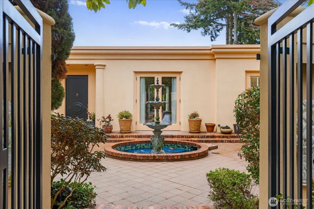 Privately tucked away behind garden gate and courtyard, the exquisite architectural details of this Blue Ridge residence create an ambiance that's simply magical. Imported European accents combine w/unique touches including a 'trompe l'oeil' entry, towering windows showcasing magnificent Puget Sound views, paneled den w/hidden bar & secret passage, & sunroom w/stairs to a view-filled turret. Grand-scale living areas, NKBA award-winning kitchen & expansive deck space create entertainment areas worthy of groups large or small, indoors or out. Two main-floor ensuites create easy one-level living. Lower-level w/private entry offers guest suite, wine room & copious storage. BR amenities include beach, pool, tennis & parks. Absolute perfection!