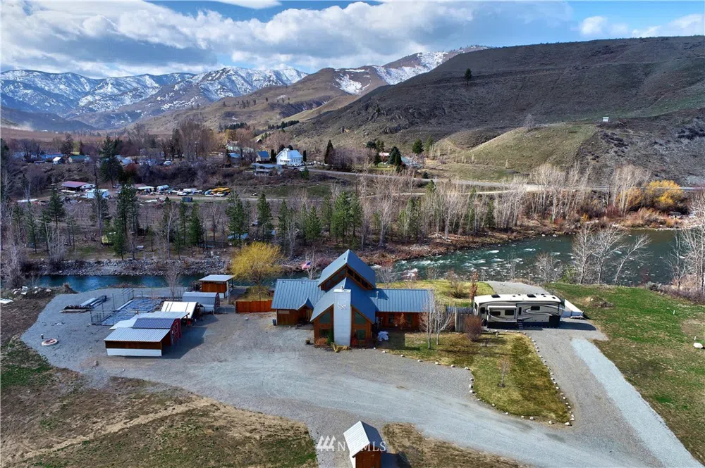 Stunning Lodge Style home overlooking Methow River on 4.36 acres with 800' of riverfront near town of Methow. Builder's own home features spacious kitchen with eating space, granite countertops, gas stove (propane), high end refrigerator, family room, floor to ceiling river rock fireplace in Great Room, vaulted ceilings 20' high, radiant floor heat. Master on main, two bedrooms upstairs with loft for extra sleeping space, knotty pine cabinets with beetle killed pine walls and ceilings, 4 A/C units, Covered outdoor kitchen, deck, 2 person salt water hot tub, underground sprinklers, and more. Listen to the sound of the Methow River from your bedroom windows. 35 mins to Chelan and Winthrop and Loop Loop Ski Bowl. You will love living here.