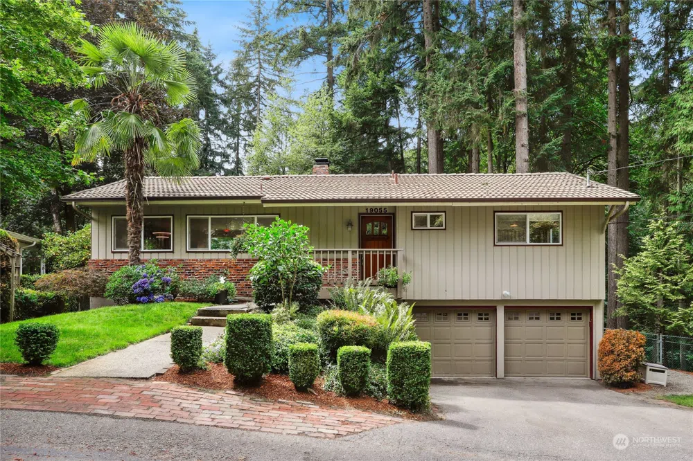 Nestled in nature, this beautifully updated home offers a serene treehouse ambiance with stunning green space views. The main level showcases an open floorplan, a chef's kitchen with a large island, a floor-to-ceiling Italian slate fireplace, and access to a spacious deck perfect for entertaining. The primary suite is a spa-like retreat with a soaking tub and separate shower. The lower level includes a family room with French doors to the backyard, bedroom, office, ¾ bath, and a laundry area. Freshly painted, with refinished hardwoods, updated baths, and a garage, this home offers total privacy. Membership to the Lake Forest Park Civic Club, plus proximity to shopping and top-rated Shoreline schools, makes this the ideal move-in ready home.
