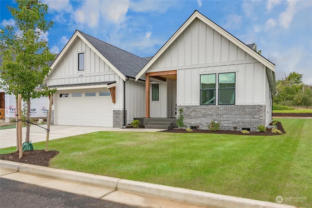 Beautiful new construction located in Lynden's newest Kamm Creek development with only 40 homes on 18 acres creating a peaceful private setting. The home's back yard abuts to open space & protected wetland areas ensuring privacy & enjoyment of wildlife for years to come. Also from the front of the home you will find Mt Baker & territorial views to the south. This rambler features 4 beds & 2 full baths & the 4th bed w/ French doors which could be used as an office. Upgrades abound incl Quartz counters, tile backsplash, stainless appl, 8' tall exterior doors & lots of storage. Primary bed w/ attached bath, dual sinks, freestanding tub, tile shower and huge closet. Oversized garage and lg private covered back patio. Vacant and move in ready!