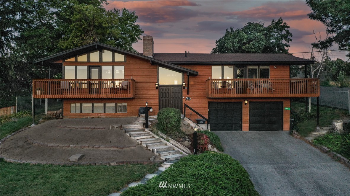Lake & mountain views accompany this beautifully remodeled 4 bedroom, 3 bath 1970's split-level home. Living room has cedar vaulted ceilings, large windows with fabulous views, brick fireplace and glass door opening to a balcony. Granite countertops, large floor to ceiling windows, and glass sliders to the 20X20 red wood back deck complete the large kitchen. Main bedroom has ensuite with granite counters, upgraded multiple shower jets and access to wrap around balcony. Lower level consists of bonus room with fireplace, storage rm, bedroom (non egress window), a 3-piece bath and entrance to the extended 2 car garage. New A/C & heat pump. One block to city park & boat launch. Multiple upgrades throughout. Call for showing.