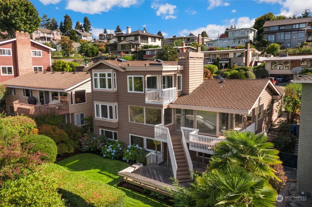 Don't miss this amazing view home in North Beach! This home boasts views from three sides stretching over 180 degrees. Wake up to the Olympic Mountains overlooking Puget Sound, from the primary bedroom. Primary bedroom includes a private deck, soaking tub, walk-in closet & wood burning fireplace. With a total of five bedrooms, four bathrooms, office, bonus room, rec room and utility area this house has it all. The kitchen, dining & living area capture sweeping views with a deck providing a great space for entertaining. Large windows on all floors bring natural light cascading in. Enjoy the beautifully maintained yard from the front & back decks. Large two car garage. Storage closets on all floors. Bring your vision to make this house home.