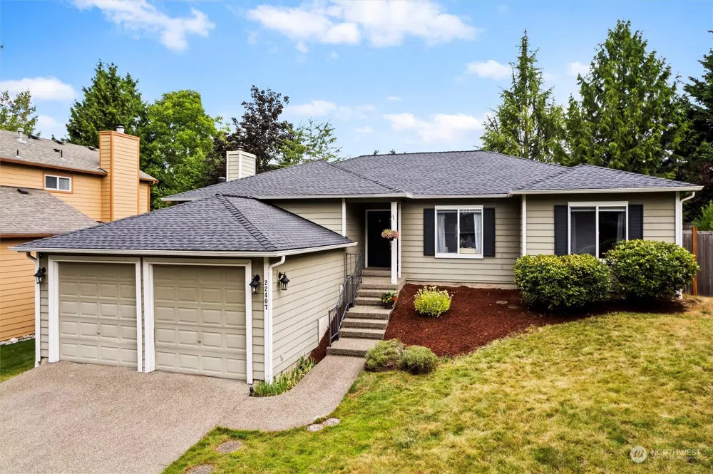 Spacious rambler nestled in the sought-after Pheasants Hollow community near Kent’s East Hill! This one-story home sits on a peaceful dead-end street adjacent to the community park. Enter to vaulted ceilings and a well-thought-out floor plan that includes two living spaces, a dining area, and a spacious kitchen that ties it all together. Down the hall, you’ll find three bedrooms and two full bathrooms, including an expansive primary suite featuring a walk-in closet and a luxurious five-piece ensuite bath with a skylight. Step outside to find an entertainment-sized deck and a low-maintenance, fully-fenced backyard. Large two-car garage. Convenient to highways, shopping, and parks!