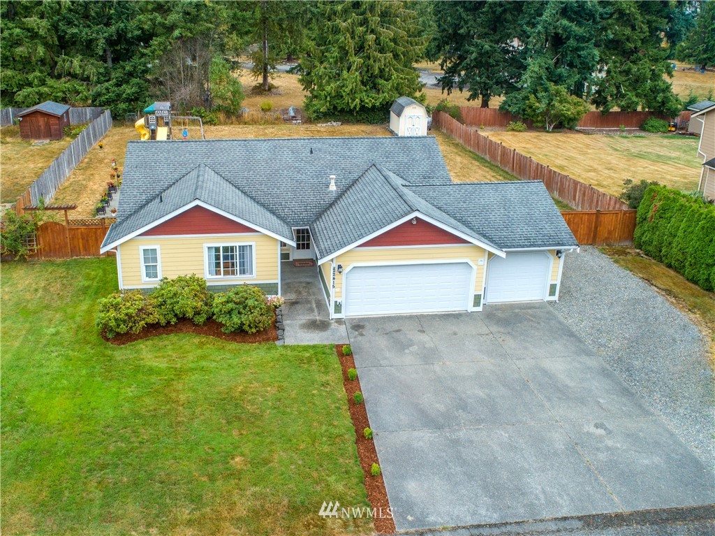 Wonderful rambler on a large, level lot in a great neighborhood. Open concept living area features gorgeous hardwood floors, gas fireplace, bright skylight. Kitchen offers plenty of cabinetry & pantry closet. The generous master bedroom includes a walk-in closet & 3/4 bath with dual sinks. The huge back yard is fully-fenced with tons of space for playing or relaxing and watching the wildlife. The large patio is perfect for entertaining. Yard includes a large garden shed, firepit and a large play structure that stays. Attached 3-car garage provides excellent storage options. This home is in a quiet neighborhood in the country but close to parks, schools & amenities. With RV parking and wired for generator, put this on your must-see list!