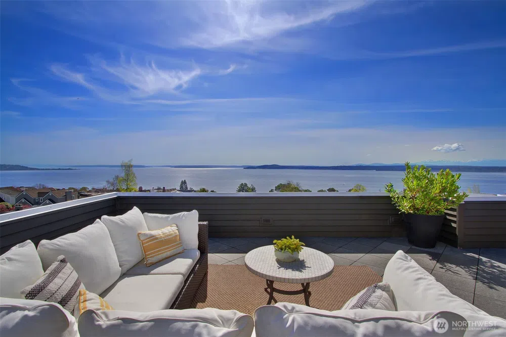 Spectacular views of Puget Sound and the Olympic Mountains define this remarkable home. Picture windows throughout provide abundant natural light to multiple living rooms, each with a fireplace. Beautiful renovations feature a gorgeous chef’s kitchen - with Wolf range, two sinks and a large island – adjacent to a family room. The kitchen/family room and the formal living room, open to a lovely deck. The primary suite offers a luxurious bathroom with soaking tub capturing the ever-changing Sound view. The roof deck is stunning – vistas to endless water and sky. The lower level offers a media room opening to the backyard patio & lawn, a generous guest room and full bath. Ideally located close to the shops & cafes of the Magnolia Village.
