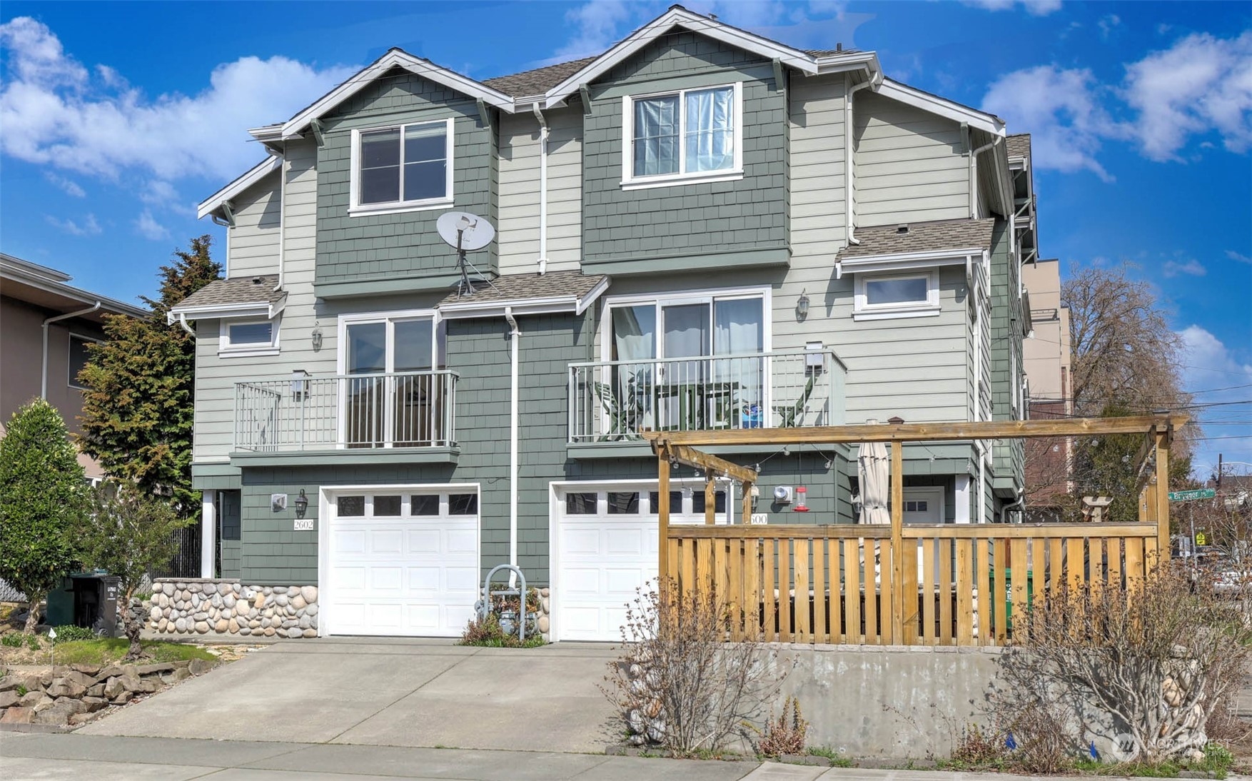 You've found the real estate Easter Egg - A quality craftsman-style Ballard townhome on its own land unlike the same modern-box townhomes that are carbon copied over & over again. Oversized & fully finished garage provides flex space for a home gym or workshop while retaining room for a car, plus a driveway that doesn't require a 14 point turn to park. Main floor bedroom with attached 3/4 bath, private patio and exterior access provides flexibility for a home office or guest suite. Sunny SW exposure provides great natural light plus views of Magnolia, Queen Anne, Mt Rainier & downtown. Epicenter location on a residential street yet steps from transit & all that Ballard has to offer. Coveted gas stove & fireplace.