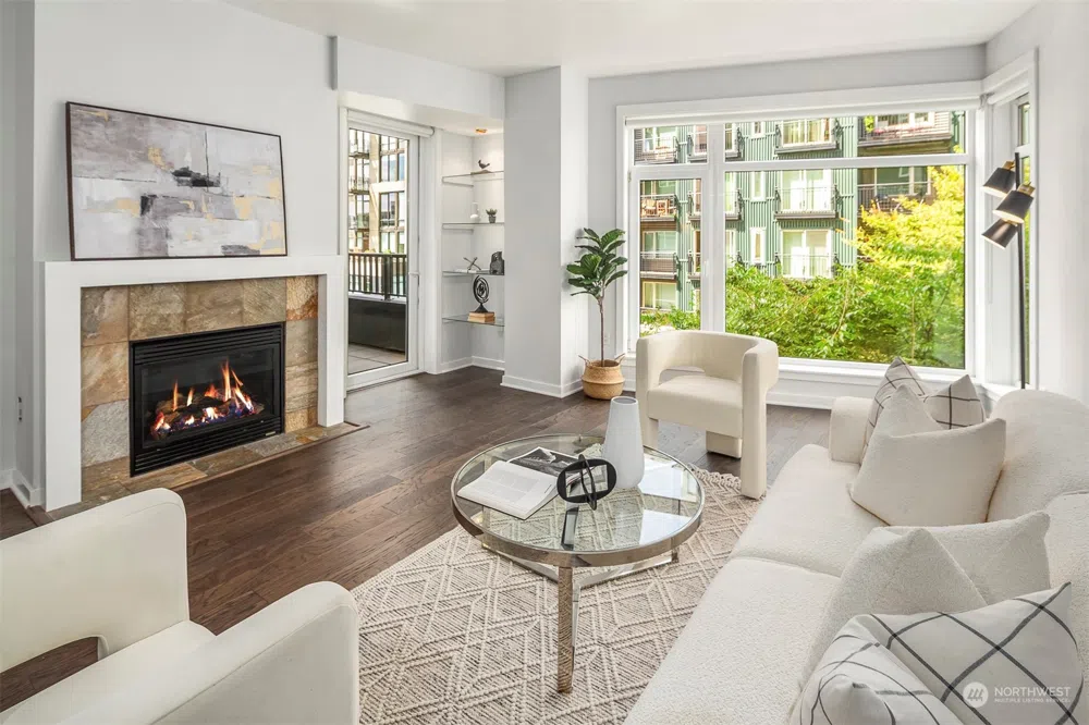 This is a fantastic opportunity to own in The Vine, a well-run, sought-after building that takes pride in homeownership. This spacious one-bedroom + den boasts a seamless flow. The home features many new updates, such as engineered hardwood floor, washer/dryer, stainless steel appliances. The new quartz countertops and fresh paint add to the chic ambiance, making this home both stylish and inviting. The building offers excellent amenities such as a 24-hour concierge, gym, clubroom, rooftop deck with stunning Puget Sound views, guest suite, secured parking with the opportunity to wire for EV charging, storage and much more! Within walking distance to the waterfront, Pike Place Market, Olympic Sculpture Park, and Myrtle Edwards.