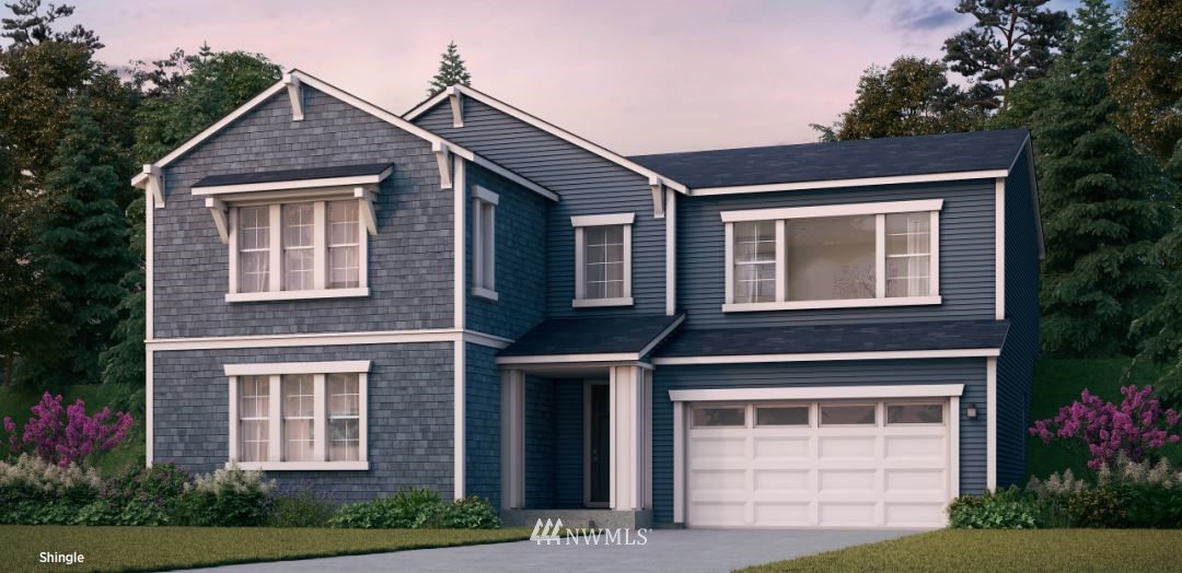 Introducing Cascade Canyon, The Everson Shingle Plan. An inviting two-story foyer welcomes you into this home with 4 bedrooms on the main level plus a full bath, laundry and bonus room. Continue upstairs to your spacious great room, kitchen and dining space with 10 foot ceilings and mountain views from the great room facing North. From the kitchen/dining area, head out to your covered patio and private backyard. The views continue from the primary bedroom with 5 piece bath and large walk-in closet. This second floor also incudes a den for a home office space and a powder bath. Fenced backyard with front and back landscaping. Pre-sale with an estimated move in 13-16 months. Completion 13-15 months.