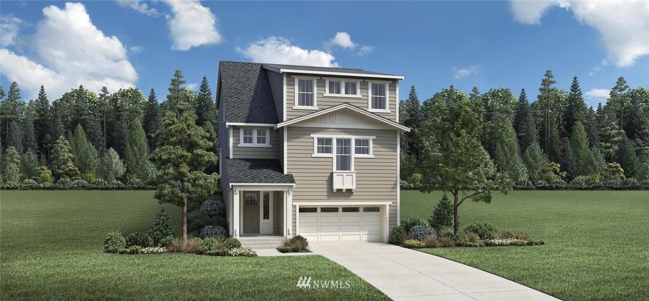 Introducing the Shuksan Traditional Plan on a fantastic corner homesite with privacy and Mt. Si views in Cascade Canyon. Beyond the entry this home features a Bonus room, Bath and Bedroom. Head upstairs to the second level to your spacious Great room, Dining area and Kitchen. From your great room, head out to your covered patio and backyard. This floor also features a Den/office area with views to Mt. Si and a half bath. The top floor features the Primary Bedroom with 5-piece bath and walk-in closet, 3 additional bedrooms, bath and laundry. Fenced backyard with front and back landscaping. Pre-sale with an estimated completion of 13-16 months. Buyers can choose finishes.