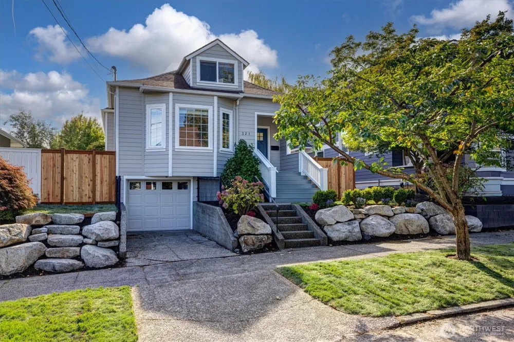 Location, Location! A bright and welcoming home situated nicely above the street just blocks from Dining, Groceries, Farmers Market, Library, Coffee Shops, Top Rated Schools, and everything we love on Queen Anne! Freshly updated, this 3 bed/1 bath craftsman style house boasts beautiful hardwood floors and tall ceilings throughout the main floor with a large living room featuring a wide bay window, a true dining space, bedroom with walk in closet, full bath, kitchen, and office round out this open concept design. Top floor 3rd bedroom and newly painted day light basement ready for your vision leads you to the attached single car garage. Fully fenced yard with outdoor patio. Minutes to SLU and Downtown make this location as commuters dream!