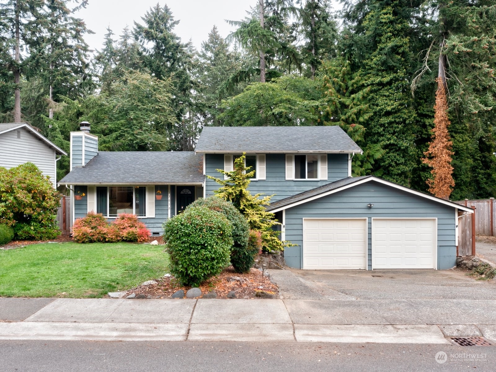 Desirable Twin Lakes area. Well maintained 4 bedroom/3 bath with open floor plan. Beautiful kitchen with granite counter tops, stainless steel appliances opens to dining and living room with vaulted ceiling and a cozy fireplace. Spacious primary bedroom w/ 3/4 bath and double vanity. Hardwood floors, newer roof and a huge new deck overlooking private greenbelt. 2-car garage plus additional off street parking. The home backs up to the Olympic View Park and walking trails. Welcome home!