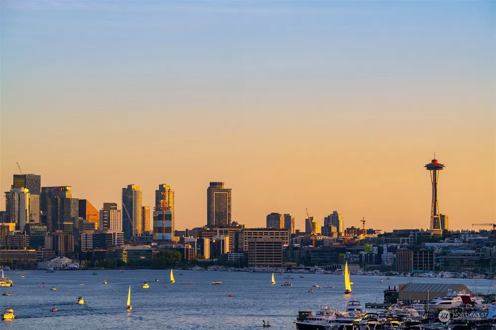 Awe-inspiring lake and city views from this beautiful top floor condo at the north tip of Lake Union. The flowing & open floorpan, drenched in natural light, begs to entertain. Stylish kitchen remodel showcases crisp quartz counters, abundant cabinets, gas range, beverage fridge and a prep sink. Breakfast bar & eating nook provide nice informal options. Primary suite offers a spa-like 5-piece bath and gas fireplace. Sip your morning coffee on the view deck as you watch the seaplanes, or BBQ as you take in the ever-changing evening scenery. Bonus features include 2 secure parking spaces, storage and workout room. Immediate access to the Burke-Gilman Trail, and just mins to UW, light rail, Gas Works and the heart of Wallingford & Fremont.