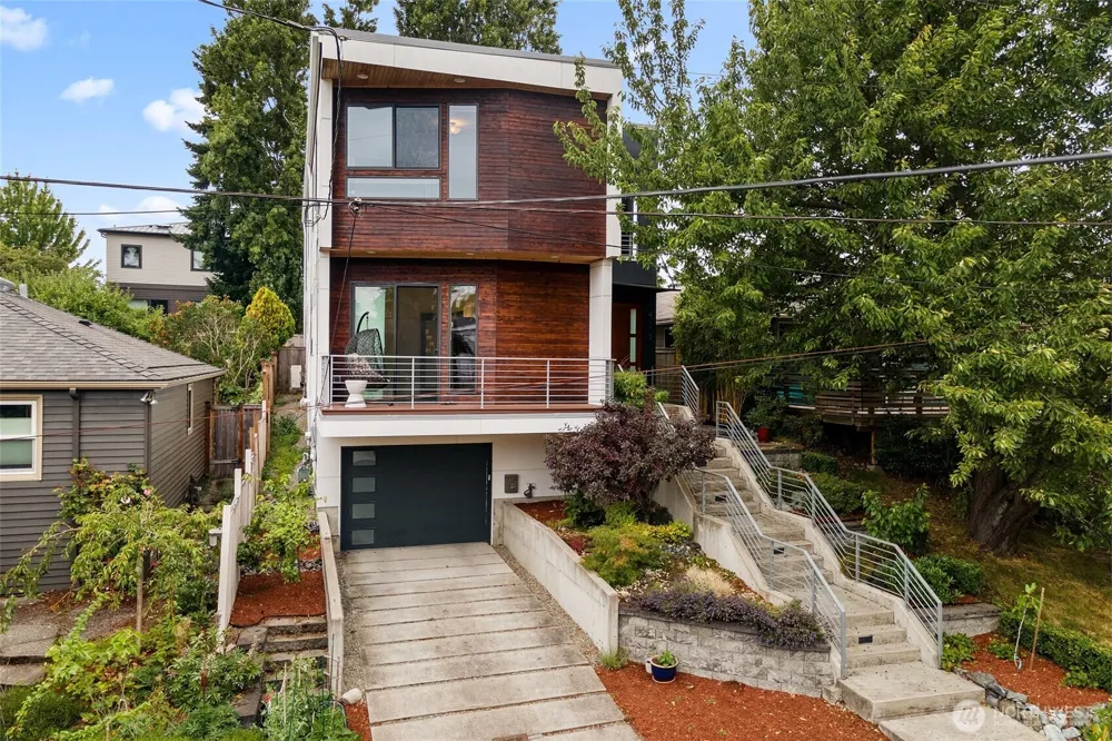 Experience the best of city living in this beautiful Fremont home where thoughtful design, comfort & style come together. This custom 4BD+ home is full of character, w/ unique Shou Sugi Ban stairs, warm wood accents, soaring ceilings, exposed beams & cozy in-floor radiant heat. Main floor features a gourmet kitchen opening to a spacious great room + 1BD & powder room—perfect for guests/office space. Upstairs offers a peaceful primary suite w/ walk-in closet, double vanity & walk-in shower, + 2BD’s, full bath, wet bar & media/5th BD. Enjoy a fully fenced yard w/hot tub & spacious 800 sf rooftop deck w/ outstanding views of Mt. Rainier, Lake Union & more. Oversized 1-car garage + driveway parking provide rare convenience. Welcome to Fremont