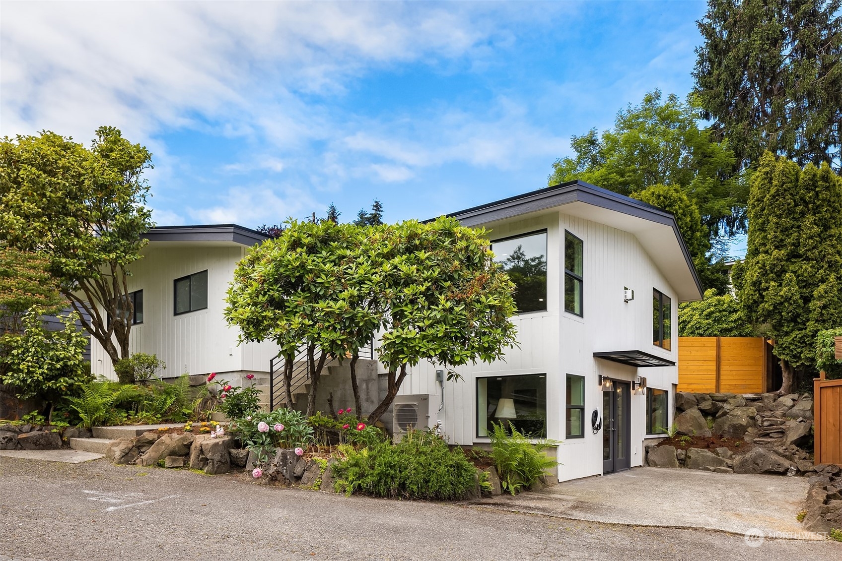 A complete studs-out renovation has transformed this home into a hidden gem. Enjoy a huge eat-in kitchen w German cabinets, large island & high-end appliances incl coffee machine, dual gas/electric stove, wine cooler & microwave. Kitchen has large windows looking out to back patio & fenced yard. Custom millwork, main level white oak floors, designer fixtures, high-end finishes, Milgard windows, built-in speakers & energy efficient AC/Heat throughout. Part of the spacious lower level can be used as a nanny, GenX, home office or rental with separate entry, full bath, laundry, heat, gas fireplace & kitchen. Plenty of parking. Home has it all even EV charger. Short distance to Discovery Park, Met Market, Ballard Locks.