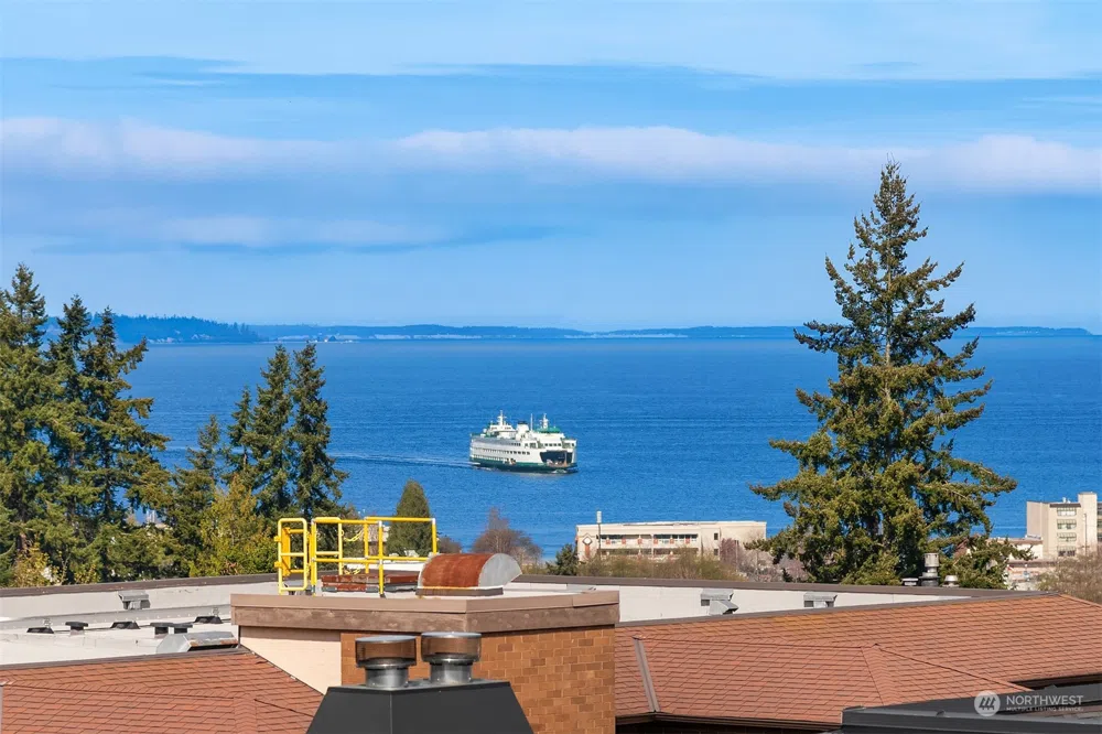 Enjoy soothing Puget Sound & Olympic mtn views from this tastefully updated top floor unit. The easy living 2-Bdrom and 1.5 Bathroom unit has extensive upgrades that include a newer gas fireplace, updated stone and tile bathrooms and a full kitchen remodel with spacious island and eating bar. Sit outside your front door to enjoy your morning coffee as you soak up the eastern sunrises or relax in the evening with a glass of wine while you take in the ferries and the setting sun from you west facing balcony. This Edmonds Bowl location provides walkability and excellent proximity to the vibrancy of Edmonds living. The Mid-Century Camelot complex has been well run and maintained. Complete with 2-assigned prkng spaces & an in-unit laundry room.