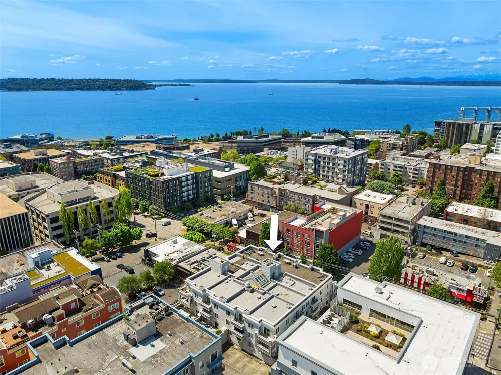 Super charming, updated top floor unit in lower Queen Anne. The city is at your fingertips…take in Storm or Kraken games, Bumbershoot, KEXP at Seattle Center or take a quick walk to downtown, the waterfront, and light rail. You’ll never run out of amazing shops and restaurants to try in this cultural hotspot. Practicalities and amenities abound including an assigned parking space in secure garage, storage space, and shared roof deck with sweeping views of the Space Needle, downtown, and Puget Sound. Spacious in unit laundry room with washer and dryer plus storage. Sweet private balcony to watch the sunrise, and a gas fireplace for cozy evenings in. Treat yourself at Nielsen’s Pastries, a Queen Anne institution, right downstairs.
