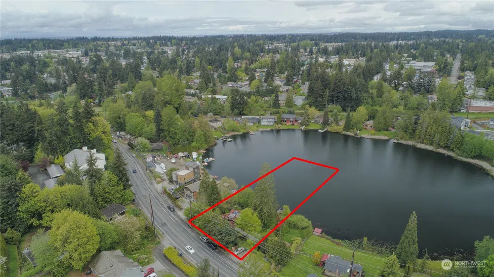 Rare find! This beautiful lakefront property has been in the same family for more than 75 years. Consisting of three adjacent lots with two dedicated off-street parking spots, it is nestled on a spring-fed, crystal-clear private lake which is ideal for swimming and boating. Very private with lovely views, yet with easy access to Seattle via the new light rail or the I-5 freeway. There is a bike trail, playground, and park within walking distance, and all amenities nearby. Remodel the existing waterfront home or come see what your imagination and vision can bring to add greater density to this remarkable setting.
