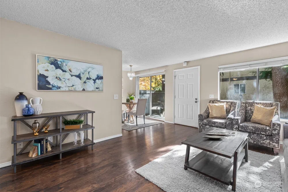 The Lynnwood Condo You’ve Been Waiting For! This charming 2-bedroom, 1-bath ground-floor unit is bathed in natural light. The open-concept living area features beautiful flooring, a spacious living room, and a cozy dining area. The updated galley kitchen boasts stainless steel appliances, perfect for any home chef. Two generously sized bedrooms offer comfort, while the bathroom shines with modern fixtures. Enjoy the privacy of your own patio and the convenience of in-unit laundry and extra storage. Close to shopping, restaurants, schools, with quick access to I-5 and the new Lynnwood transit center. No rental cap! Don't let this property pass you by!
