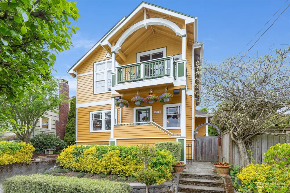 1928 Ballard home combining classic elegance and modern convenience. This move-in ready 3-bed, 2-bath residence features arched doorways, original moldings, and a fully updated chef's kitchen with high end appliances, and custom glass blown pendant lights sourced by a local artist. A 94' addition created a spacious 2nd floor, including a master suite with sitting room along with a private balcony. Enjoy a private, fully fenced, landscaped yard with a hot tub. Large unfinished basement is full of potential, can be used as storage, or even potential to add useable sq footage. Located in a vibrant neighborhood, close to shops, dining, and parks. This home offers timeless appeal and contemporary comfort in one of Seattle’s most desirable areas