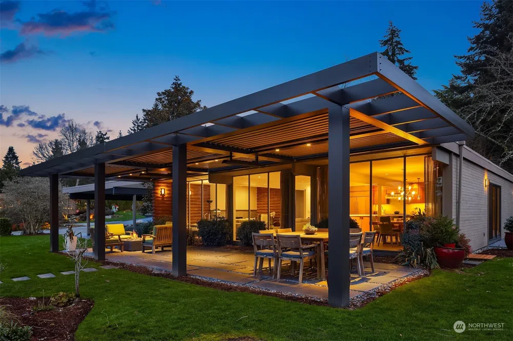 Mid-Century Modern w/ Westside Shared Water & Boat Moorage! Rare, turnkey rambler on oversized, flat lot in sought-after West Ridge neighborhood. Beautifully renovated, sophisticated updates stay true to mid-century esthetic. Peaceful & Zen-like. Clean lines & exquisite finishes: handmade tiles, wide plank hardwoods, skylights & designer lighting. Stunning sunsets, lake & mtn views from floor to ceiling windows. Ideal floorplan w/ center stage kitchen, open dining & living spaces. Primary suite w/ walk-in closet & 5 pc bath. 2 more BDRs + breezeway to separate guest studio. Seamless indoor/outdoor living: covered patio w/ custom pergola, outdoor heaters & fire table for year-round enjoyment. Community waterfront w/ dock & boat lift!
