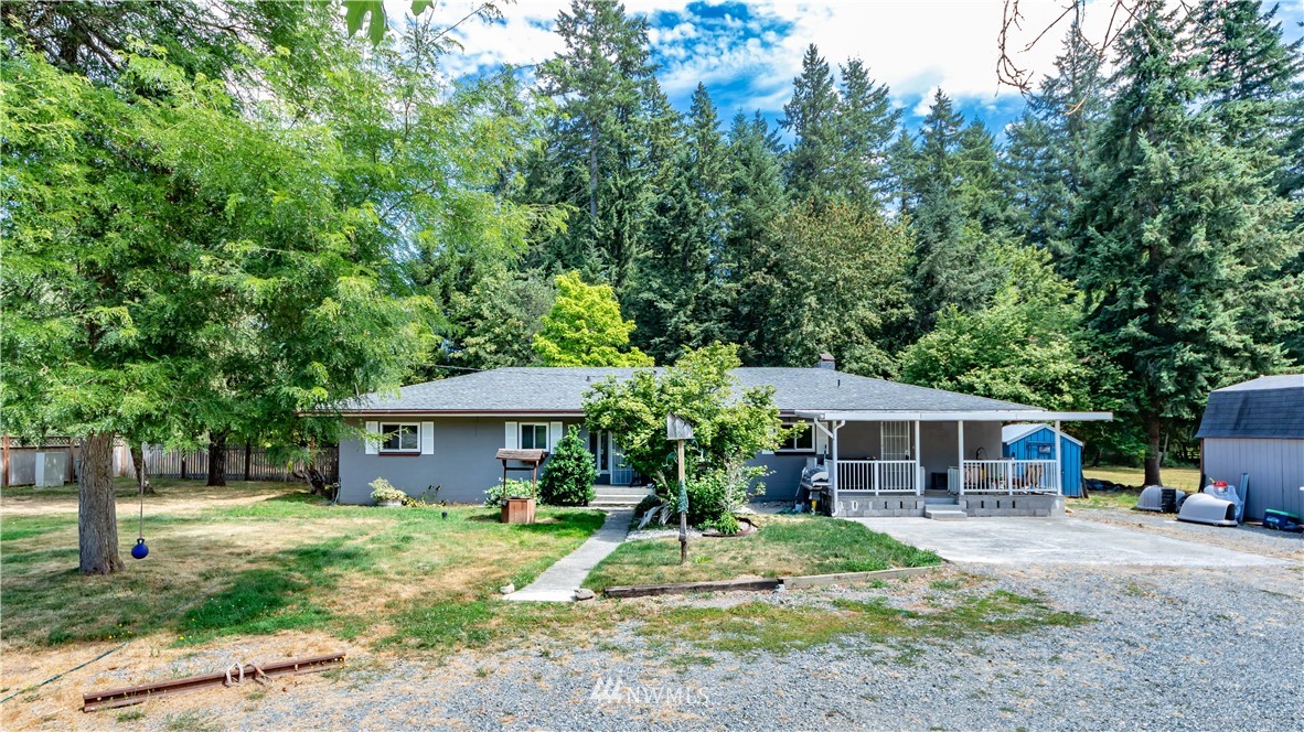 Welcome to country living! Enjoy this updated RAMBLER on 5 flat & usable ACRES! So many possibilities w/this sizable piece of property, set it up for a mini farm, bring your toys, entertain to your hearts content or just have a quiet park like setting to relish in. Home boasts 3 bedrooms plus bonus space or 4th bdrm, 1.5 bthrms, beautiful stone tiled floors in laundry rm, separate mud rm & entry, open concept great room w/gorgeous hardwood floors & custom decorated wood burning fireplace, a stunning kitchen perfect for get togethers w/granite countertops, ss appliances, huge island w/seating plus elegant cabinets. Outside there are many outbuildings, chicken/goat pen & the sought after detached garage/shop (20X40). Make this your new home!