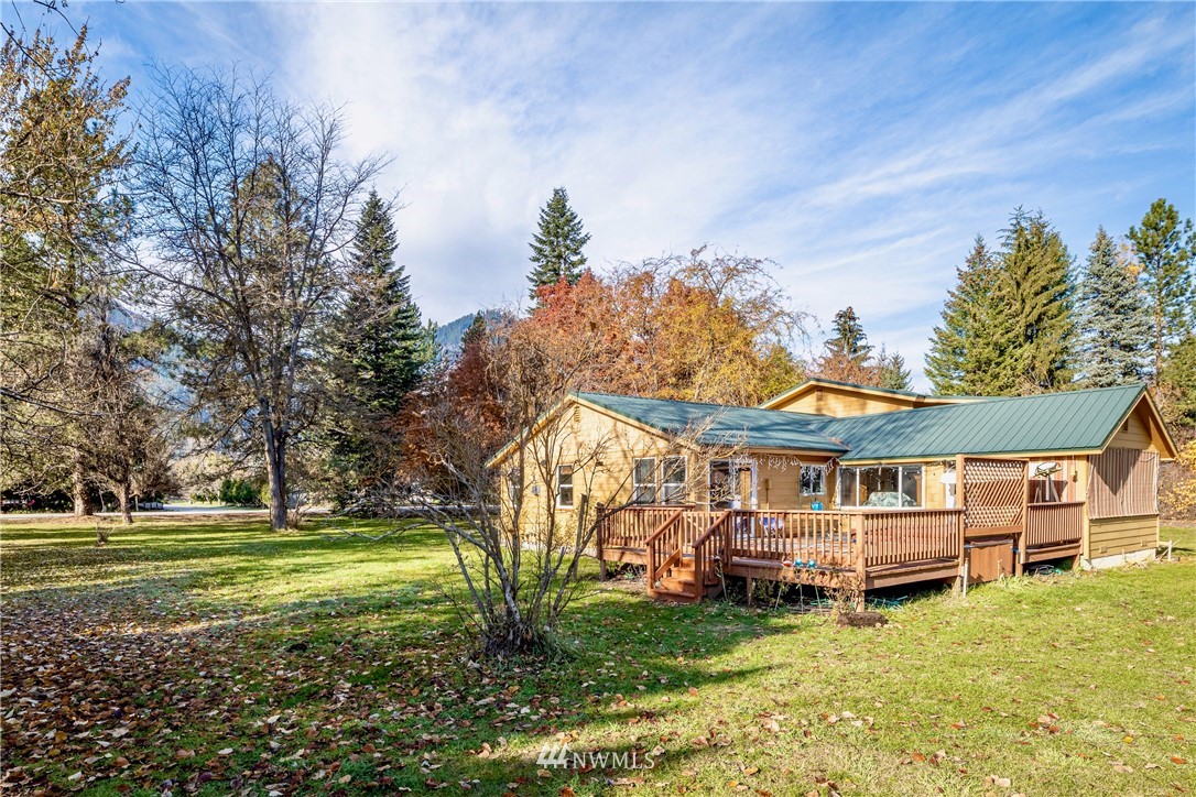 This wonderfully maintained East Leavenworth home has it all: Great location & nicely landscaped. 3 Bedrooms, 3 baths, 2 extra rooms. Brazilian Cherry Hardwoods, Pine wood beam ceilings, Propane fireplace with custom mantel and marble. Kitchen offers granite countertops and new appliances. Two bedrooms and bathroom with laundry are on the main floor. Upstairs, you'll find a master suite with deck to enjoy the beautiful views. Great sitting porch with fabric blinds, to enjoy the outdoors all on a level irrigated private 1.34 acres. Newly painted hardy board exterior, Large deck with Hot Tub, new insulation and energy star roof. Located just 3 minutes from town! Great views. Beautiful Views.