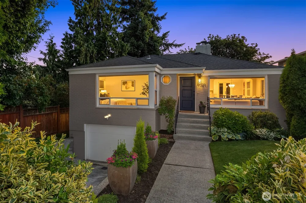 Welcome to this charming, beautiful 3-bedroom traditional home in the heart of Greenwood. The remodeled, open-concept kitchen features quartz counters, stainless appliances, and exposed brick, blending character and modern comfort. Light-filled living areas with fireplaces on both levels create a spacious, inviting atmosphere. The versatile basement is ideal for guests, a movie room, or home office. The upgraded garage with epoxy floors doubles as a flexible gym/studio or parking. Enjoy a private, landscaped backyard with a deck overlooking a serene greenbelt. Just steps to Trader Joe’s, Fred Meyer, parks, and top spots, with excellent transit nearby. A true community feel with friendly neighbors and fun block parties.
