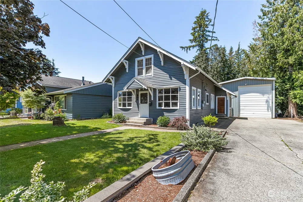 Move-in ready charmer located in the heart of Lynden.. with a shop! Character country home in the city, this 3 bedroom and 2 bath home sits on a spacious 11,000+ sq ft lot that backs up to a salmon-bearing creek! Main floor has 1 bedroom, full bath, utility room, spacious kitchen and dining area and an oversized living room with a gas fireplace. Upstairs you will find 2 more bedrooms, a full bath, and a bonus room. Tons of off-street parking on a long driveway that takes you to a large 24 x 36 shop with a loft and wood burning stove. Fully-fenced, well-manicured, and large back patio with a hot tub in a covered gazebo. FHA assumable loan!