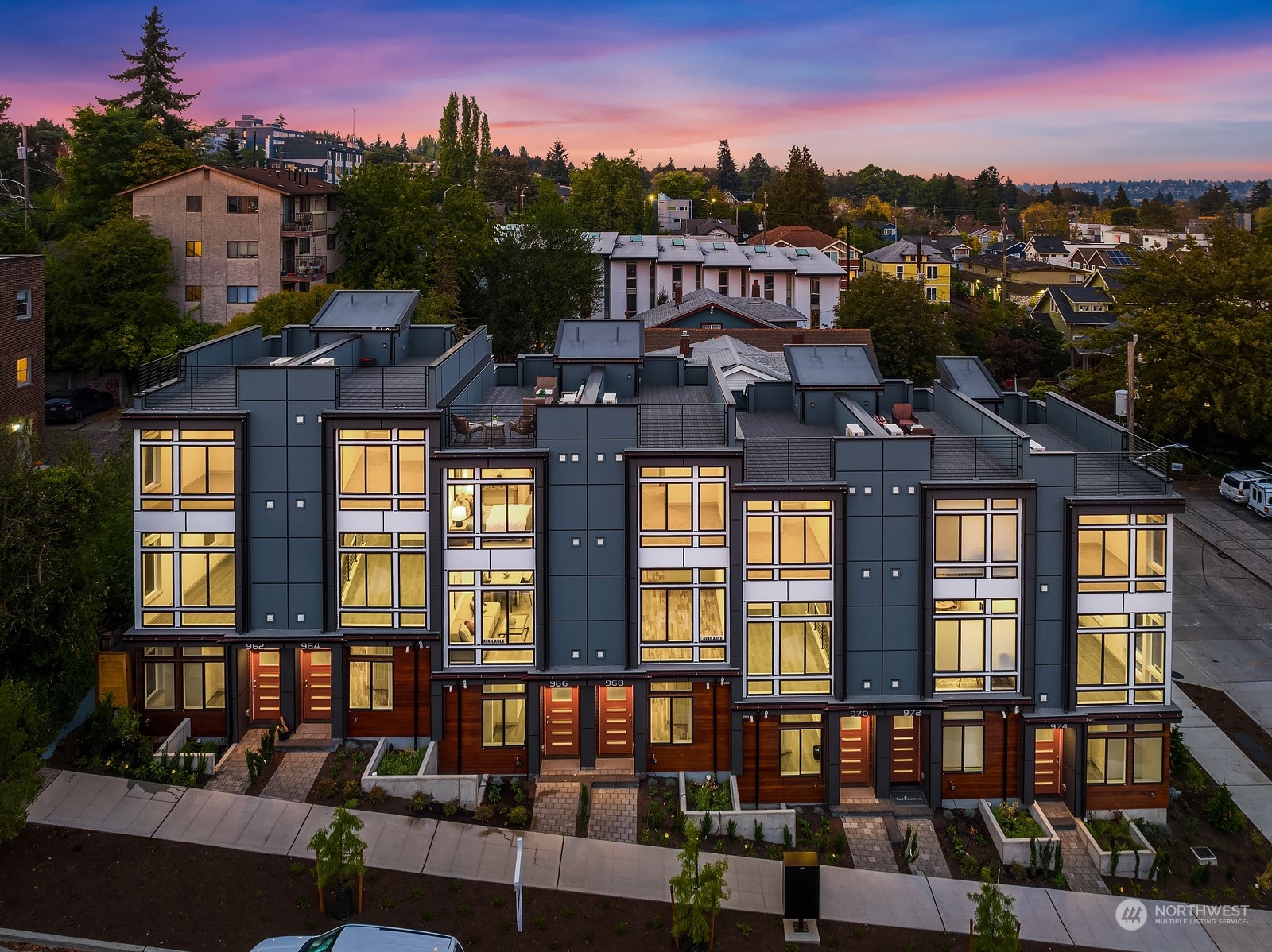 LAST AVAILABLE HOME! Highly sought-after new construction end unit centrally located in Wallingford w/ultra-dynamic views of Seattle Skyline, Mt. Rainier & S Lake Union. SELLER TO CREDIT BUYER $10,000 TOWARDS CLOSING COSTS. Boasting a functional floor plan & eco-friendly design w/an abundance of natural light flooding each room. Chef's kitchen w/SS appliances, sleek slabs of quartz & gorgeous solid wood floating staircase. Spacious top floor primary suite w/deluxe spa-like bath. 2nd bedroom on lower-level w/bath & flex/bonus space upon entry. Large roof deck w/outstanding views of the City, Lake &Rainier. Located w/in mins of all Wallingford amenities: shops, boutiques, parks, breweries &more! WalkScore of 91! Designated parking included!
