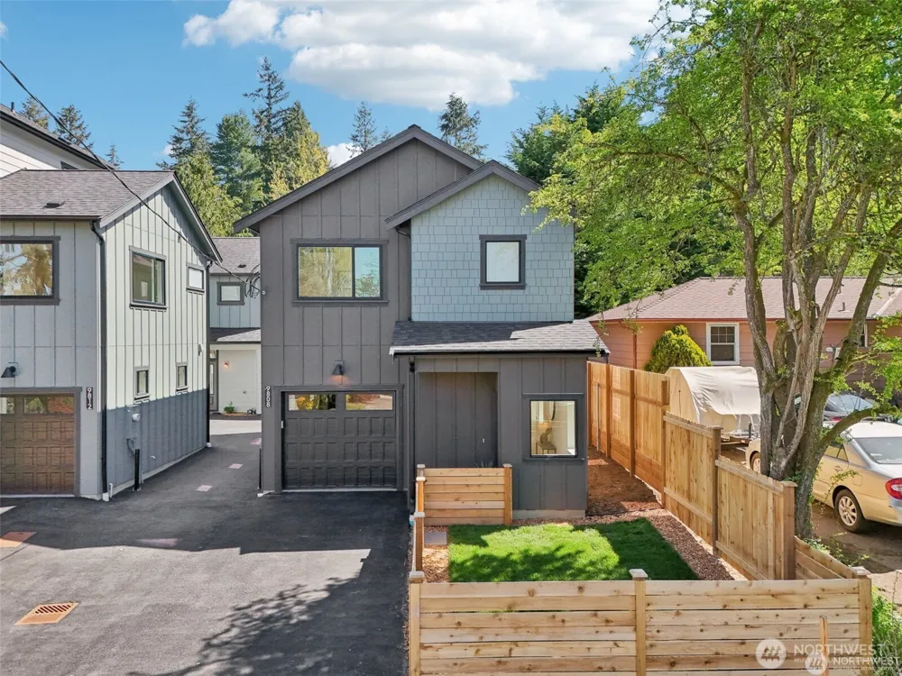 Stand alone 1,093 sq ft west facing stylish DADU in excellent north Maple Leaf location. The modern open kitchen is a chef's delight, with stainless steel appliances, quartz countertops, and sleek shaker cabinets—perfect for entertaining. Two spacious bedrooms and two elegant baths, plus main floor powder room. Super unique feature: Private, fully fenced back and front yards, complete with a cozy firepit. Attached oversized heated garage with EV charging, adding convenience for eco-conscious living. Conveniently located near Maple Leaf and Northgate shopping and restaurants, and 1/2 mile to the Northgate light rail station for effortless commuting.